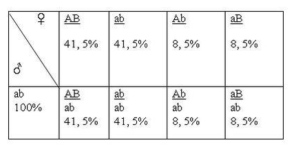 P tc: ♀ \(\frac{AB}{AB}\) x ♂ \(\frac{ab}{ab}\)